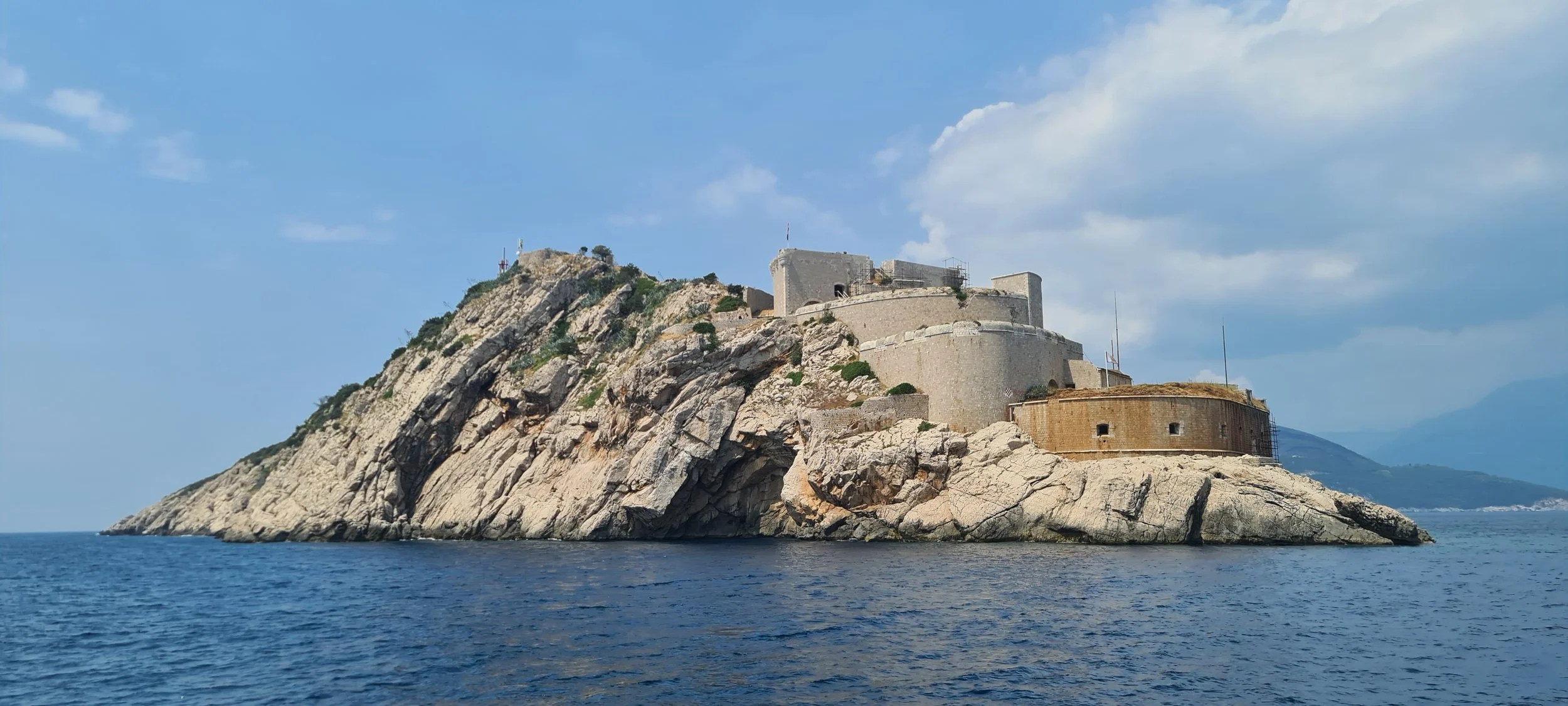 Then it was up the coast and into the magnificent Kotor Bay (Boka), impressive 19th century Austro-Hungarian forts guarding the entrance, past Cold War Yugoslav submarine tunnels (cleverly disguised by fake rocks) and the very picturesque Otok Island (Gospa od Milo) before anchoring off Stradioti Island; developed in 1962 as a Club Med with Pacifica styled huts, it fell into disuse during the Yugoslav wars 1991-2001 and has slowly reverted back to nature.
